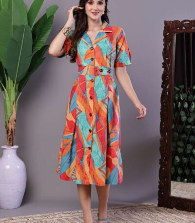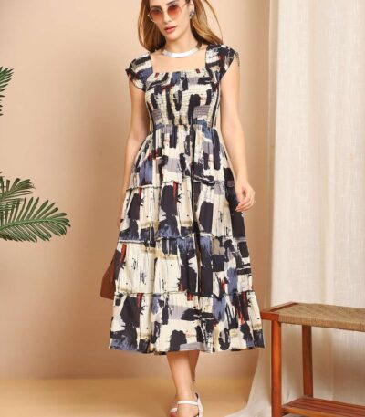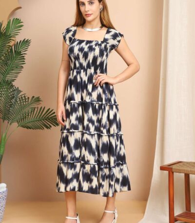 Women’s Viscos Rayon Printed Off Shoulder Midi Dress For Summer And Casual Wear
