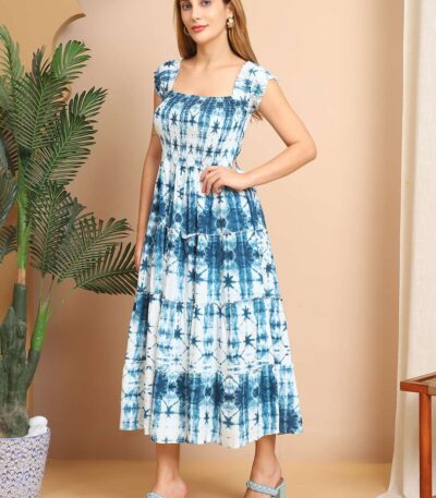 Women’s Viscos Rayon Printed Off Shoulder Midi Dress For Summer And Casual Wear (Blue Td)