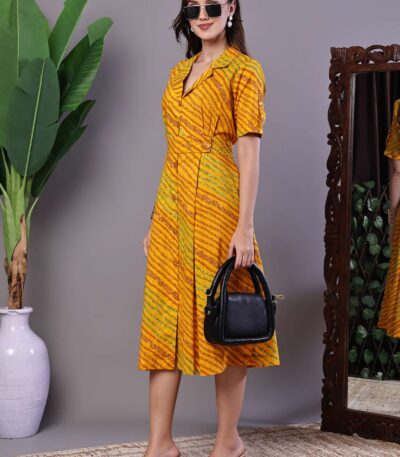 Women’s Mustard Yellow Cotton Printed Lehenga Choli Dupatta Set